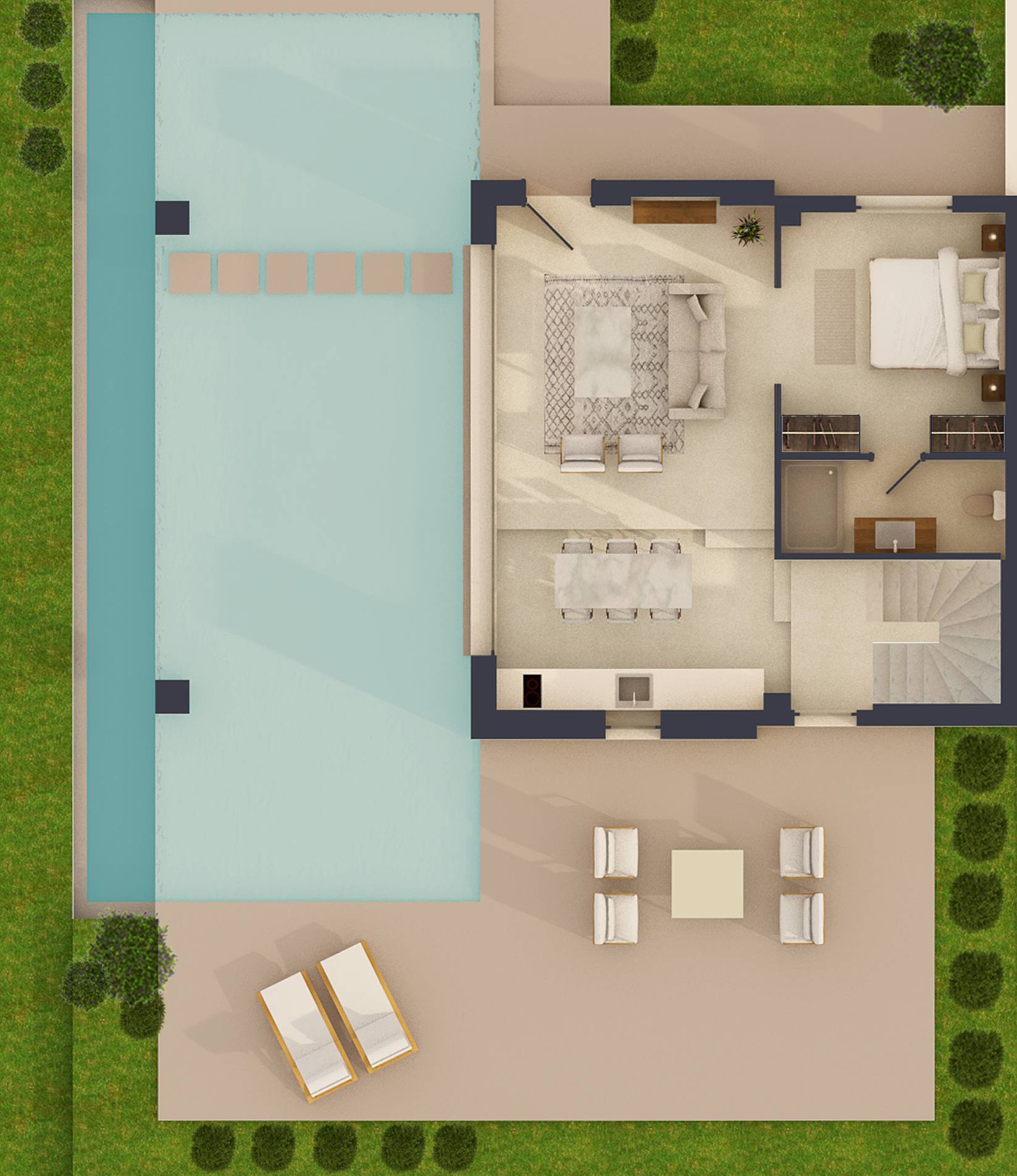 1 – Schlafzimmer Suite mit gemeinschaftlichem Pool